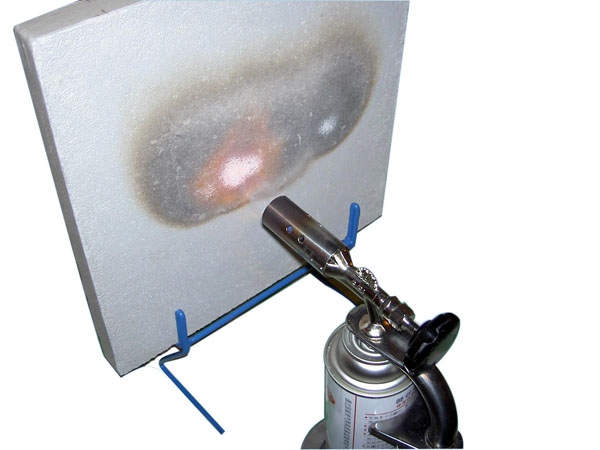 圖為電子點(diǎn)火噴槍對(duì)EVB保溫砂漿的局部燃燒實(shí)驗(yàn),