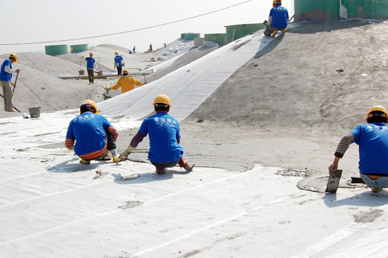 由于項目的重要性,建設(shè)方對時間和質(zhì)量提出了高標(biāo)準(zhǔn)、嚴(yán)要求,不但要求材料優(yōu)良,技術(shù)過硬,而且必須具有快速施工的能力。10月份,偏逢海南遭遇歷史罕見暴雨,無法正常施工,給青龍公司帶來了最為嚴(yán)峻的考驗。為了確保工程如期完成,青龍公司擴(kuò)大施工隊伍,120余名建設(shè)者加班加點,堅守崗位,全力以赴,打造好的細(xì)節(jié)。從成品出庫、物流、施工、檢驗、后勤保障等,每一個細(xì)節(jié)爭分奪秒。在青龍人的精心操作和不懈努力下,工程如期完成,10萬平方米的保溫層已順利通過驗收,工程質(zhì)量監(jiān)督負(fù)責(zé)人和市級領(lǐng)導(dǎo)多次考察,對青龍能在如此巨大壓力下的超常施工能力表示贊嘆。目前正在進(jìn)行防水抗裂層及屋頂GRC工程安裝,預(yù)期春節(jié)前完工。