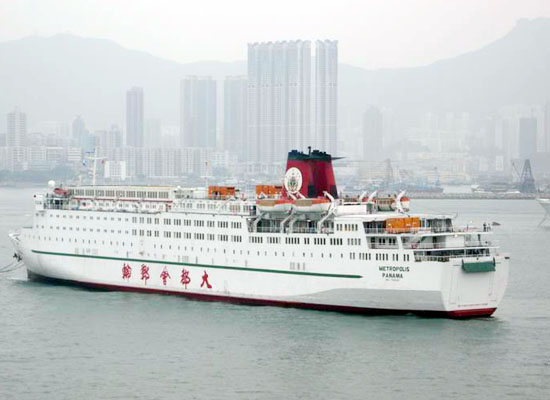 大都會(huì)郵輪Metropolis前身為明輝公主號(hào),於2007年更名及以「大都會(huì)郵輪」之名航行短線2日1夜海上假期。大都會(huì)郵輪 (Metropolis) 建造地點(diǎn)Kanasashi Shipbuilding(日本) ,首航年份1972排水量(噸)18000...它有著"海上六較好的酒店"之稱。排水量17261噸海上郵輪,船高九層,豪華客房300間,可載380乘客之超級(jí)郵輪。是現(xiàn)時(shí)香港具有規(guī)模及設(shè)施最完善的豪華郵輪之一,船上設(shè)施包括:中菜廳、西餐廳、娛樂場、夜總會(huì)、卡啦OK房、桑拿浴室等,一應(yīng)俱全,設(shè)備完善,務(wù)求使每個(gè)旅客得到較好享受。