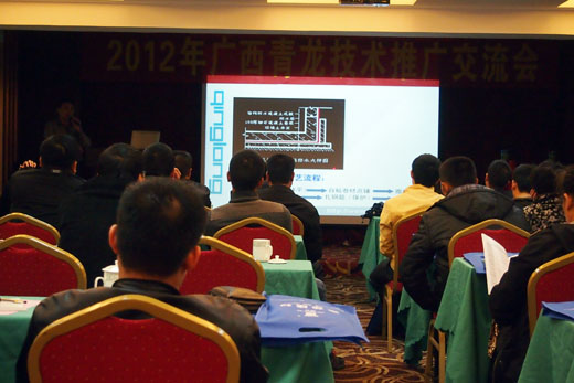 2012年11月8日,龍行天下之青龍建材防水技術(shù)交流會(huì)柳州站在柳州市金瑞酒店隆重召開(kāi)。會(huì)議由青龍建材防水保溫技術(shù)總工程師徐新生、廣西青龍化學(xué)建材有限公司原廠長(zhǎng)黎世鷹任主講,共有50余人參加。