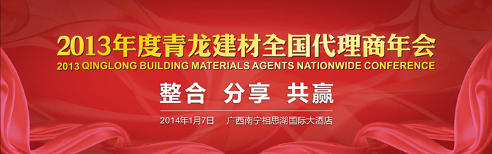 為了提高代理商的銷售積極性,促進代理商之間的溝通和交流,增進公司與代理商之間的感情,從而增強團隊的凝聚力,提升渠道隊伍的戰(zhàn)斗力,青龍集團將在2014年1月7日在廣西南寧(廣西分公司)舉辦2013年度會議。年會將圍繞防水行業(yè)“整合、分享、共贏”等方面展開,熱忱歡迎青龍集團全國代理商及有志于在防水行業(yè)掘金致富的求富人士參加。