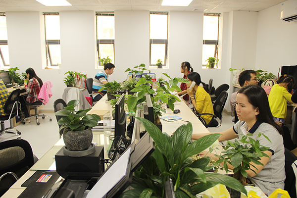 無論是個人辦公桌還是公共區(qū)域,辦公室的每個角落,都被充分裝點(diǎn)起來,擺放上各種適合辦公室的綠色植物,綠意盎然洋溢在整個新辦公室。