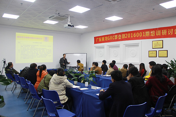 為了進一步提升青龍建材一線銷售人員的防水技能,全面掌握防水材料知識,擴大銷售額,2016年2月22日至23日,青龍建材防水材料技術視頻培訓在中山公司會議室舉辦。培訓會由青龍公司防水工程師梁志勤先生主講,青龍建材董事長宋總,營銷總監(jiān)賀總,各地區(qū)域經(jīng)理,電商部員工以及南寧公司部分員工等30余人參加了會議。