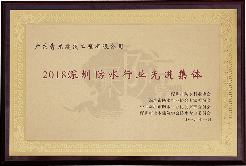 一、獲2018年深圳防水行業(yè)先進(jìn)集體獎(jiǎng)