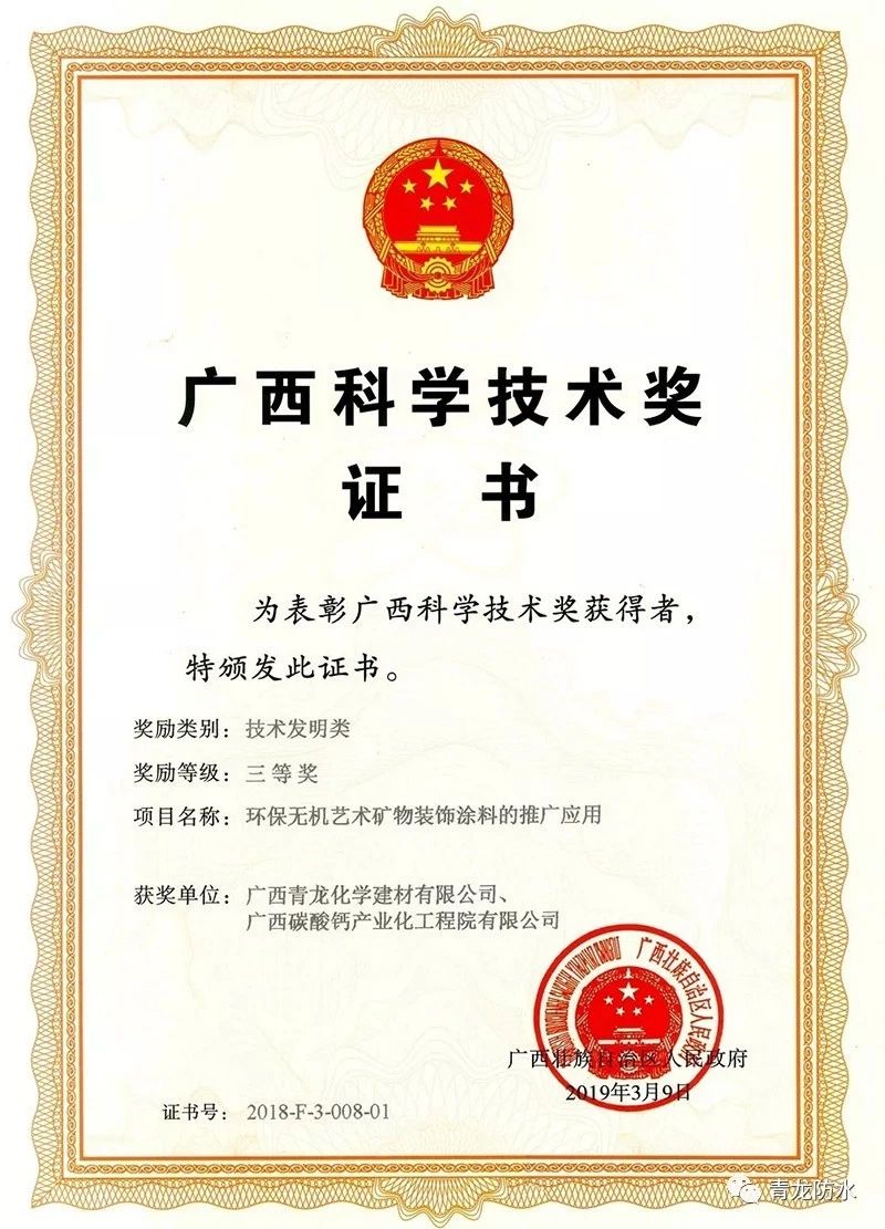 9月,在廣西科學(xué)技術(shù)獎(jiǎng)勵(lì)大會(huì)上,青龍公司榮獲廣西科學(xué)技術(shù)獎(jiǎng)三等獎(jiǎng)。