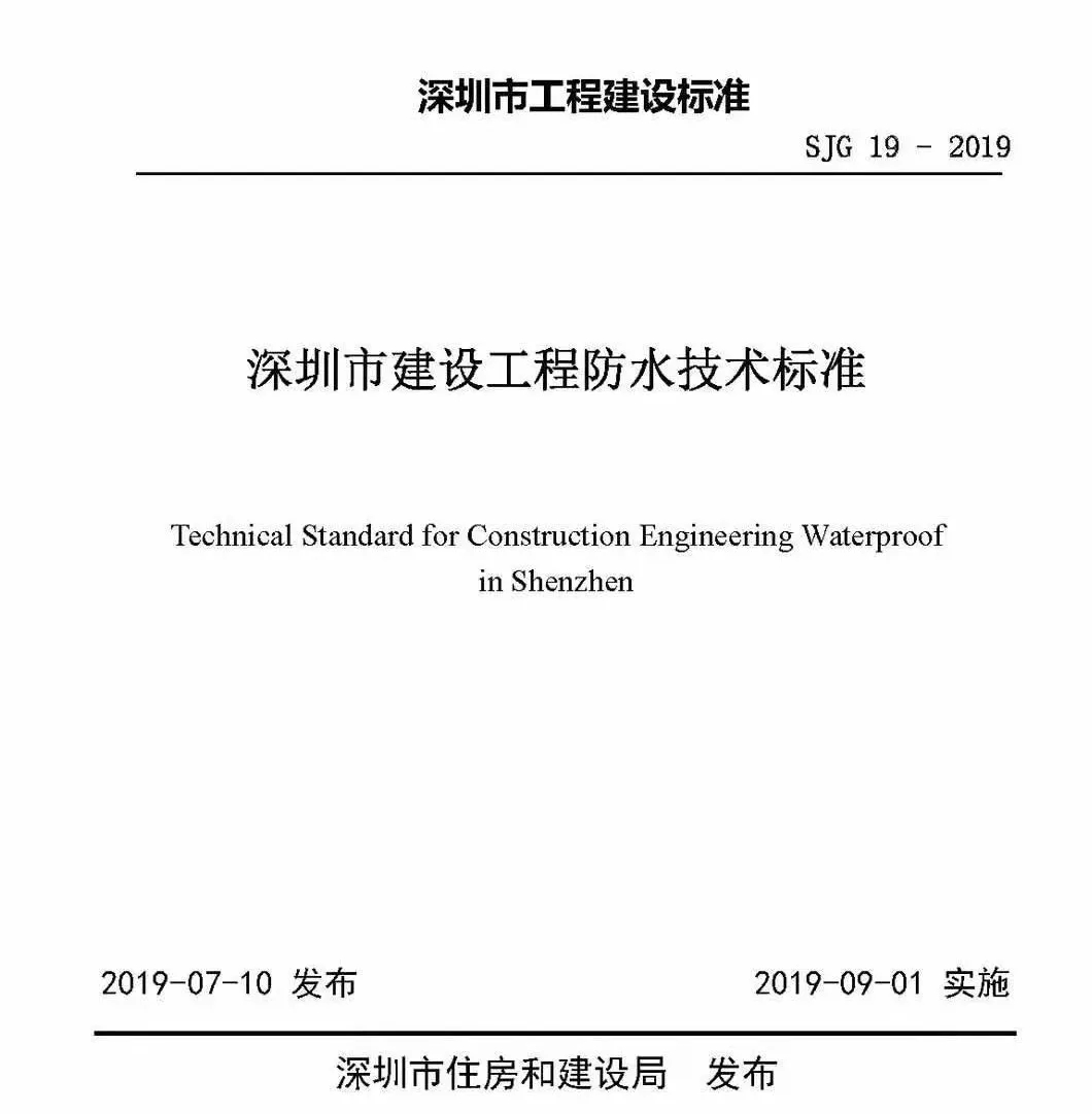 7月初,深圳市住房和建設(shè)局正式發(fā)布《深圳市建設(shè)工程防水技術(shù)標(biāo)準》SJG19-2019。