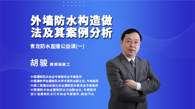 胡駿教授是資深的防水行業(yè)知名專家,他不僅擁有扎實的專業(yè)能力,并且都親身參與過多起國內(nèi)重點防水工程,實戰(zhàn)能力過硬。今晚他將為大家?guī)?外墻防水構(gòu)造做法及其案例分析"的課題,從外墻構(gòu)造形式、外墻防水構(gòu)造做法等最基本的防水知識入手,幫助大家詳細(xì)了解外墻防水原理、使用材料和施工細(xì)節(jié),最后以具體的案例分析介紹其中的成功得失,幫助我們在以后的防水補漏工程中規(guī)避那些不規(guī)范的做法。