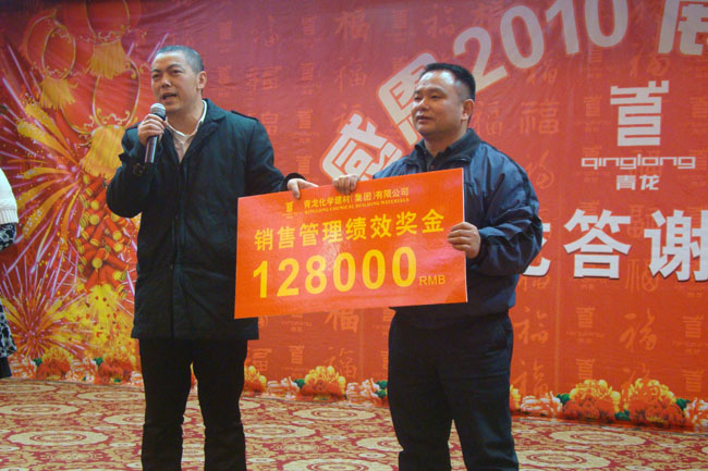 會上,青龍公司重點表彰了優(yōu)秀代理商代表和企業(yè)優(yōu)秀員工,其中對廣西青龍公司曾知博經(jīng)理個人銷售管理績效獎金高達(dá)12.8萬元,曾總發(fā)表感言說,青龍公司是個一個重信譽(yù),講誠信,有實力的企業(yè),非常感謝青龍能給自己這樣一個實現(xiàn)自我價值的平臺,并表示愿意和廣西青龍廣大同仁一起努力拼搏,2011年再創(chuàng)輝煌。