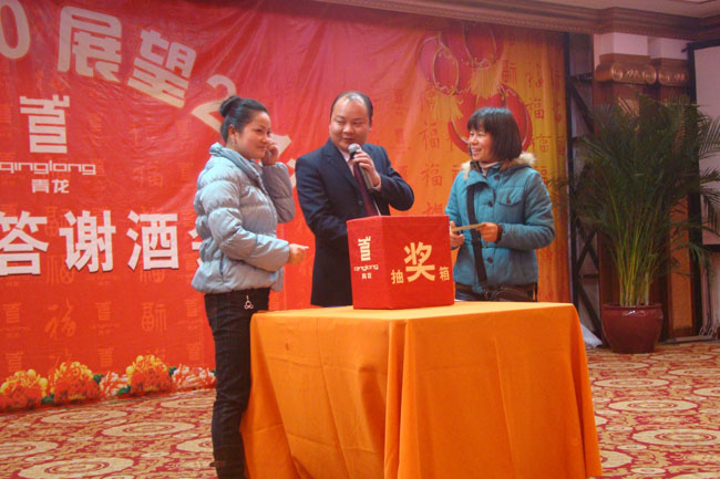 本次青龍答謝酒會的主題是:"感恩2010,展望2011"。南寧市隆安縣華僑經(jīng)濟(jì)管理區(qū)領(lǐng)導(dǎo)、南寧市建委墻改辦領(lǐng)導(dǎo)、設(shè)計院領(lǐng)導(dǎo)、檢測中心領(lǐng)導(dǎo)、各房地產(chǎn)建筑公司領(lǐng)導(dǎo)及廣西青龍代理商和員工200余人出席了本次酒會。