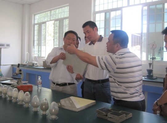 圖為參觀考察廣西青龍evb保溫砂漿生產(chǎn)車間