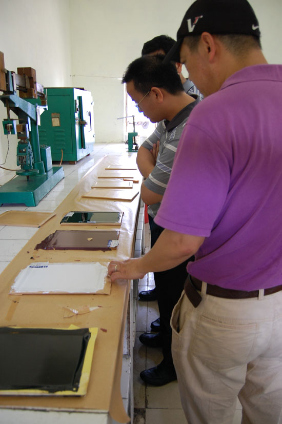 2011年6月2日上午,來自深圳市建筑工務(wù)署的領(lǐng)導(dǎo)與市政府采購中心考察人員在青龍董事長宋敦清等相關(guān)領(lǐng)導(dǎo)的陪同下參觀了廣西青龍工廠EVB生產(chǎn)車間、防水卷材生產(chǎn)車間、技術(shù)研發(fā)實(shí)驗(yàn)室、產(chǎn)品展示廳等,并認(rèn)真聽了廣西青龍董事長宋敦清的匯報(bào),介紹了青龍公司近年來跨越式發(fā)展取得的成就,特別是生產(chǎn)規(guī)模、生產(chǎn)秩序、質(zhì)量保障體系,重大工程材料供應(yīng)等工作情況。