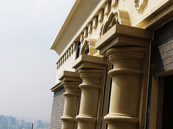 項目的B座為商住樓建筑,呈現(xiàn)出歐式風(fēng)格。建筑的外觀均為經(jīng)典的灰白配色,外墻則采用了廣西青龍化學(xué)建材有限公司生產(chǎn)的歐式構(gòu)件作為裝飾,包括羅馬柱、窗框裝飾構(gòu)件、建筑線條,雕塑等,從細微處展現(xiàn)出建筑的非凡品質(zhì)。此外,建筑頂部的幾層和裙樓部分也大量地采用了歐式構(gòu)件,從而將古典歐式建筑的精髓演繹到好的,成為了南寧商住樓建筑的新標(biāo)桿。
