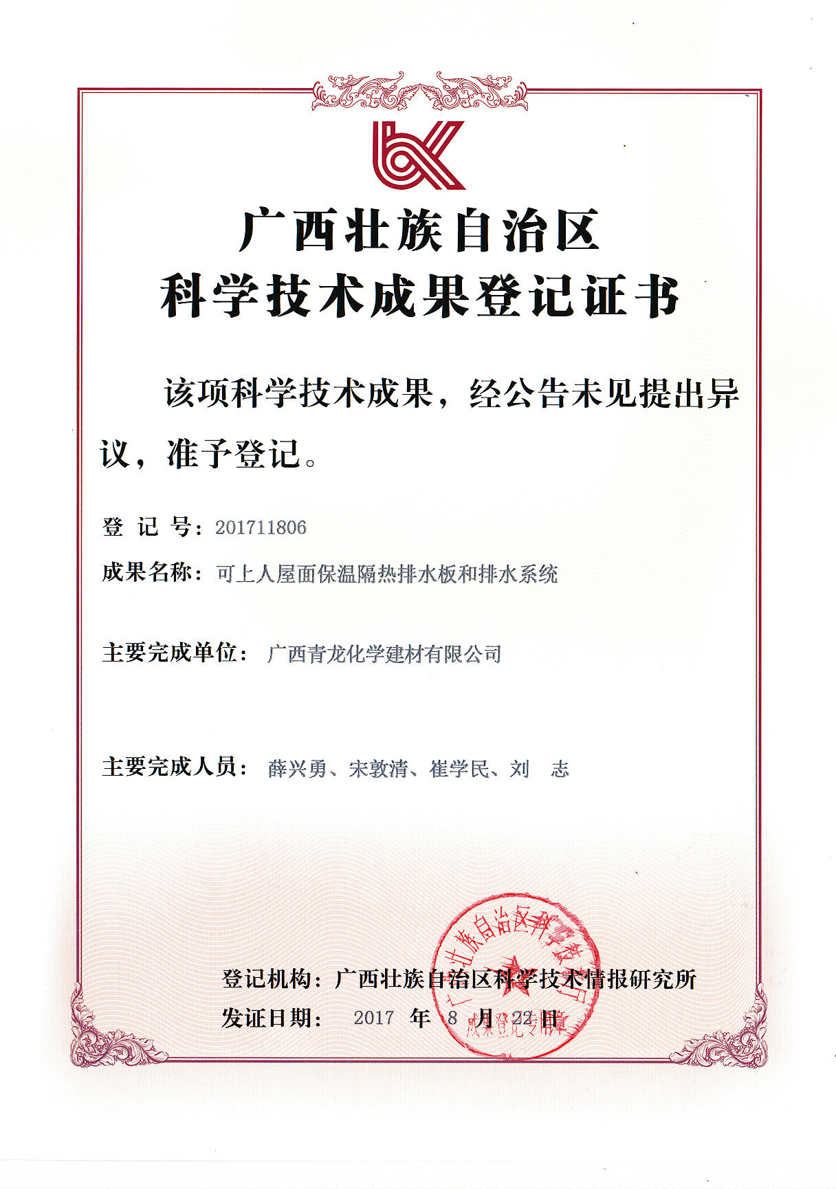 可上人屋面保溫隔熱排水板和排水系統(tǒng)科技證書