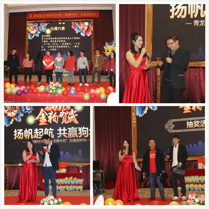 2018年2月7日,青龍建材中山公司2017年年終總結(jié)表彰大會(huì)及2018迎新年會(huì)在中山維出納國(guó)際酒店隆重舉行,青龍董事長(zhǎng)宋敦清、營(yíng)銷總監(jiān)賀金龍、招商總監(jiān)周炳陽、家裝事業(yè)部總經(jīng)理于超軍、質(zhì)量總監(jiān)張科、中山工廠廠長(zhǎng)劉文學(xué)、方文軍以及青龍中山公司、港口工廠、三角工廠全體員工參加了盛會(huì)。晚會(huì)還現(xiàn)場(chǎng)連線了青龍海南環(huán)球100GRC工廠和馬來西亞森林城市防水工地。晚會(huì)繼往開來,精彩紛呈,其樂融融,取得了圓滿的成功!