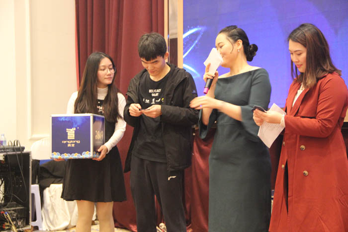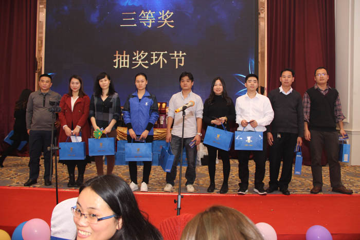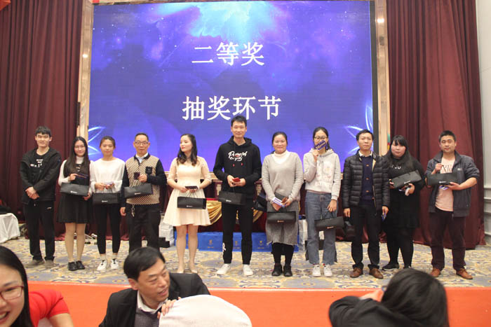 除了精彩的文藝節(jié)目,更讓人充滿期待的當(dāng)然是晚會(huì)標(biāo)配的抽獎(jiǎng)啦!今年公司為大家準(zhǔn)備了微信搖一搖、精美實(shí)物獎(jiǎng)勵(lì)、微信紅包和現(xiàn)金紅包等等多項(xiàng)多種大獎(jiǎng),主持人每一次的報(bào)獎(jiǎng)都讓大家小心臟撲通撲通的跳,充滿希望,中獎(jiǎng)?wù)呦膊蛔詣伲∫惠営忠惠喆螵?jiǎng)也將年會(huì)推向高潮,大家都非常的興奮,歡快!