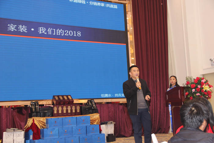 青龍家裝防水事業(yè)營(yíng)銷(xiāo)總監(jiān)于超軍作《家裝,我的2018》總結(jié)報(bào)告,簡(jiǎn)要分析了2018年青龍家裝防水市場(chǎng)開(kāi)發(fā)情況及存在的問(wèn)題,對(duì)2019年的重要工作作了部署,召開(kāi)大家同心同德,再創(chuàng)輝煌!