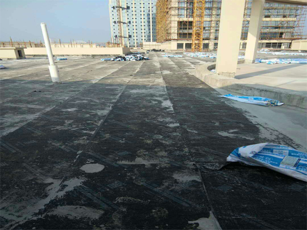 3、雨淋:卷材具有一定吸水性,施工時要求卷材表面干燥,受潮施工后會造成起鼓、粘結(jié)不良現(xiàn)象。