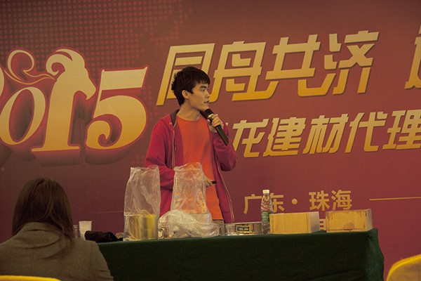 年會會議上,青龍防水材料質(zhì)量總監(jiān)張科首先介紹了青龍最新推出的兩款產(chǎn)品:青龍三號防水透明膠和高滲透環(huán)氧灌漿材料,詳細分析了其特點,優(yōu)勢和應用前景,指出,這兩款新防水材料相比傳統(tǒng)防水材料具有明顯的防水效果,將會為代理商帶來新的競爭優(yōu)勢,并以實例演示展現(xiàn)青龍三號防水透明膠的防水性能。
