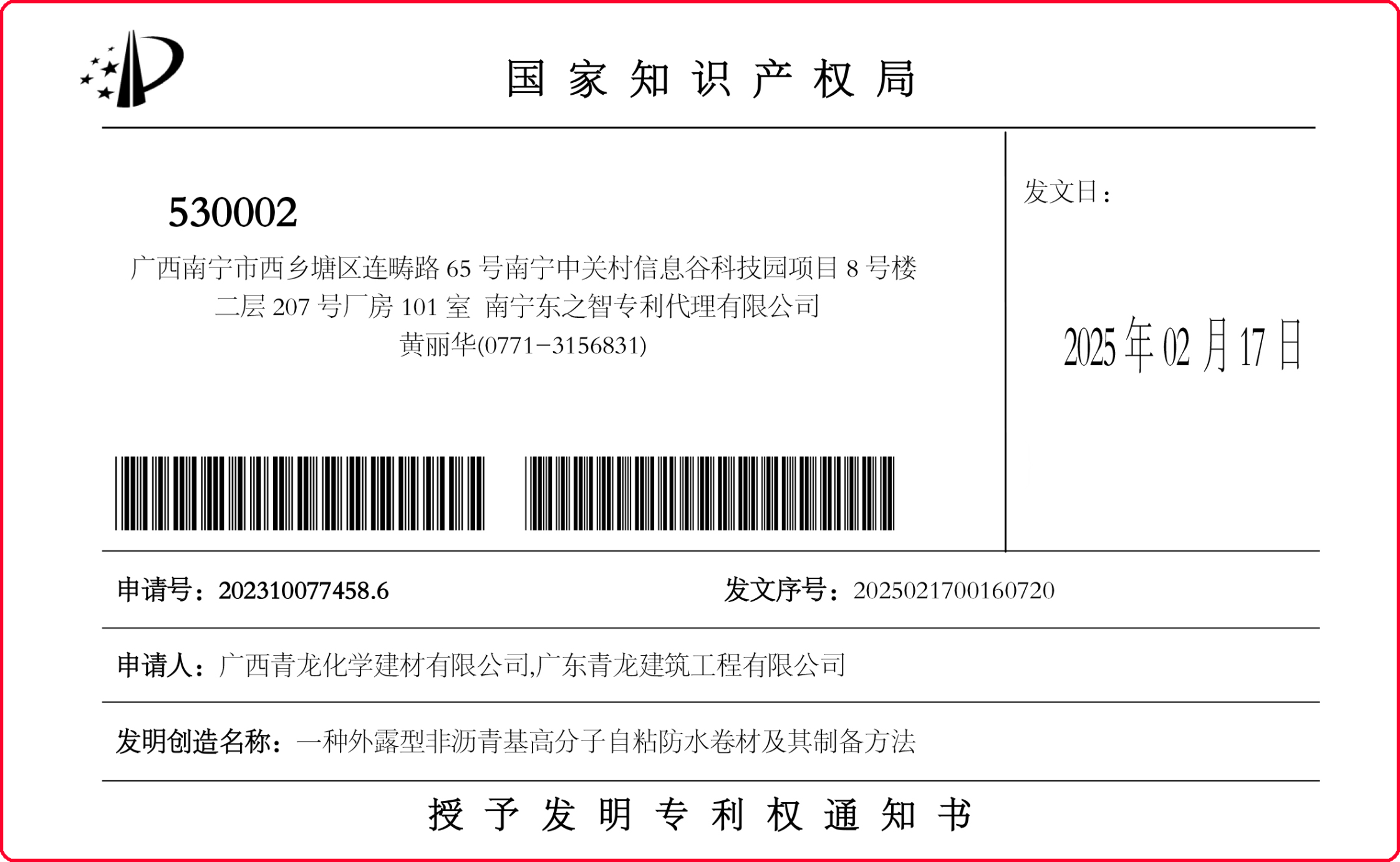 最新消息!青龍新專利來了,讓你的防水工程放心無憂