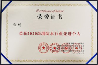 青龍防水張科榮獲深圳市防水行業(yè)協(xié)會(huì)“先進(jìn)個(gè)人”稱號(hào)