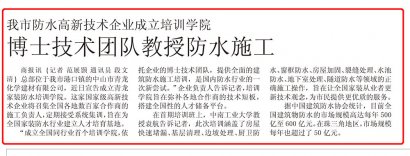 【中山商報報道】我市防水高新技術(shù)企業(yè)成立培訓(xùn)學(xué)院 博士技術(shù)團(tuán)隊教授防水施工